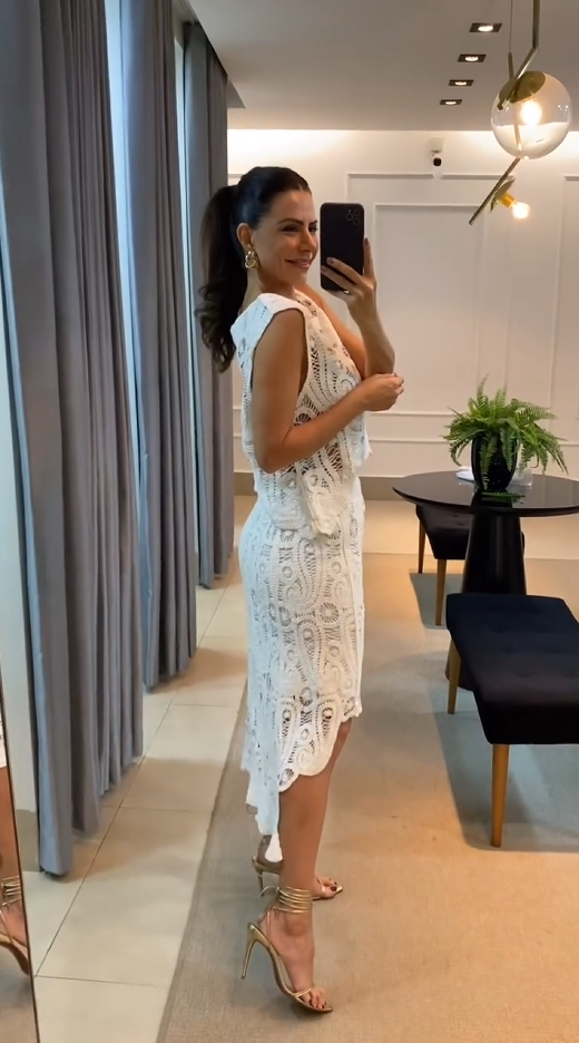 Um look leve, romântico e cheio de estilo! Perfeito para ocasiões especiais à luz do dia ou eventos sofisticados com um toque artesanal.