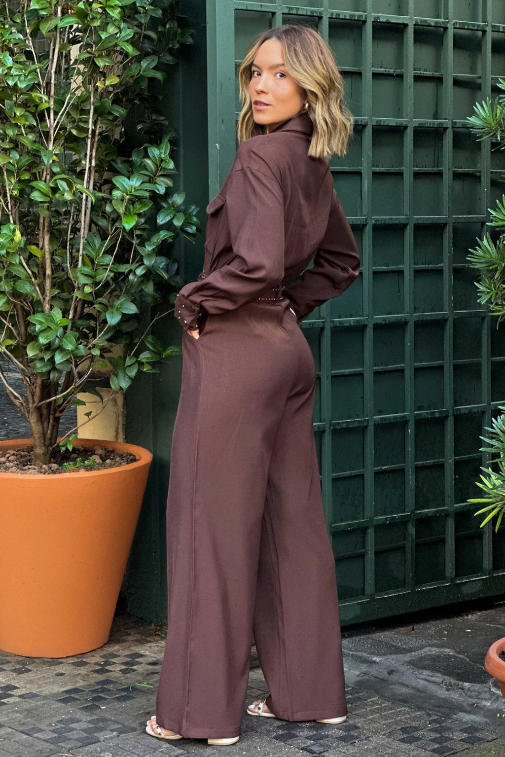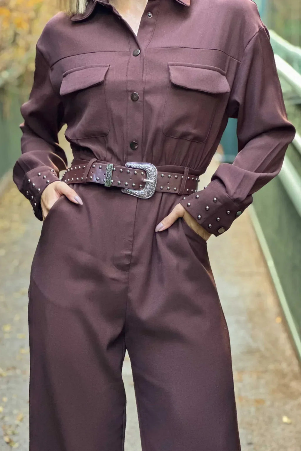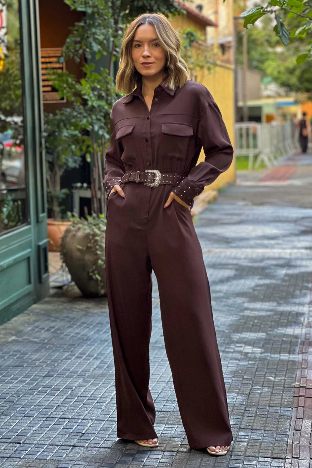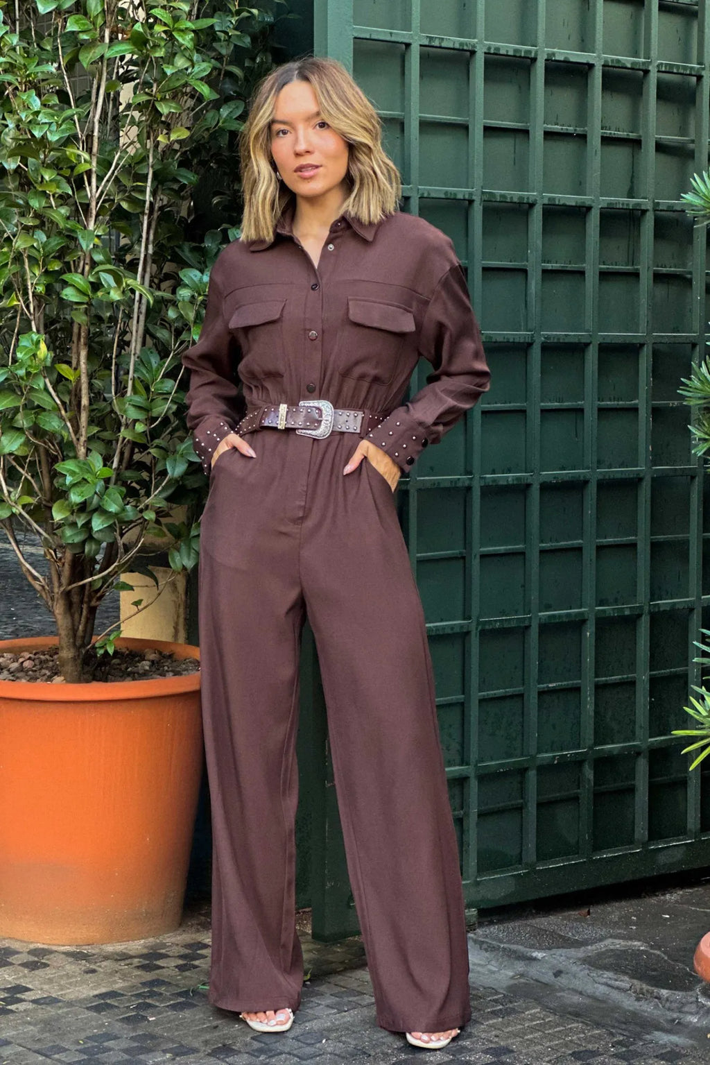 Macacão Feminino Manga Longa com Cinto