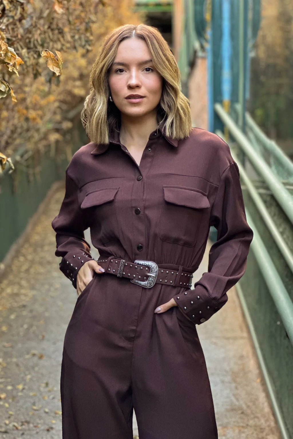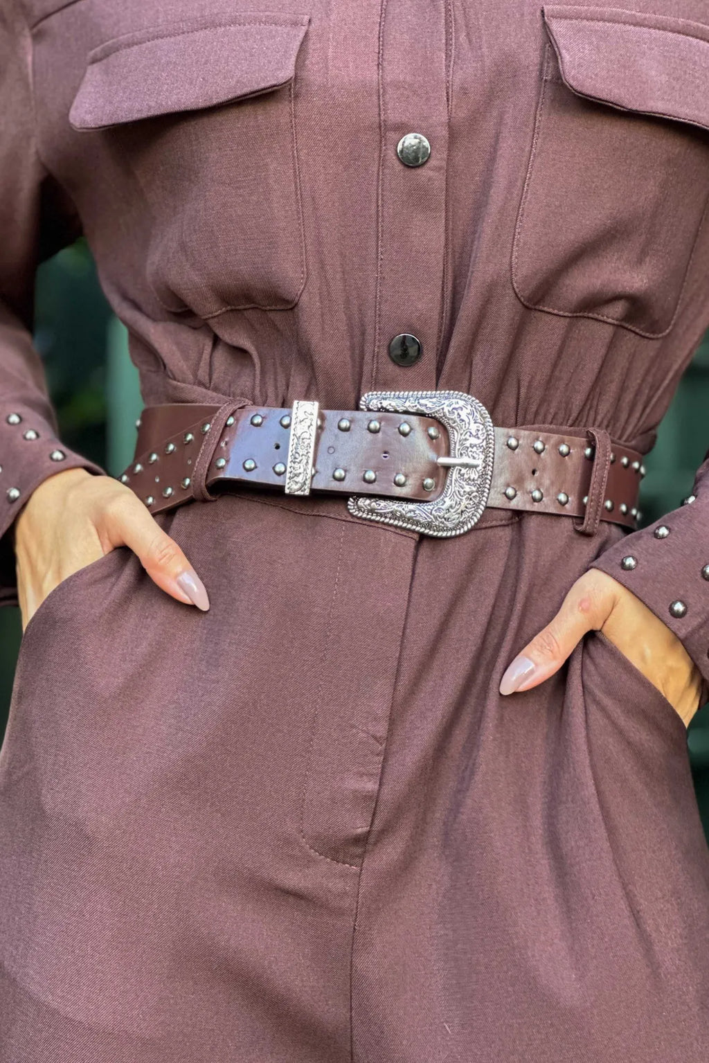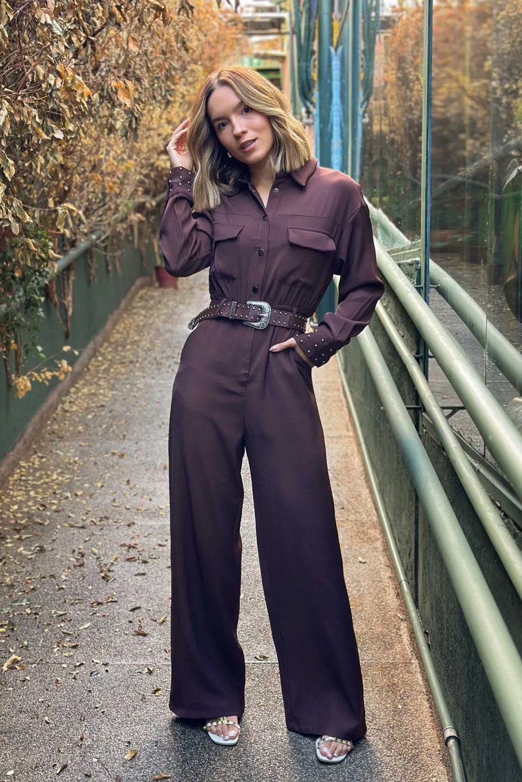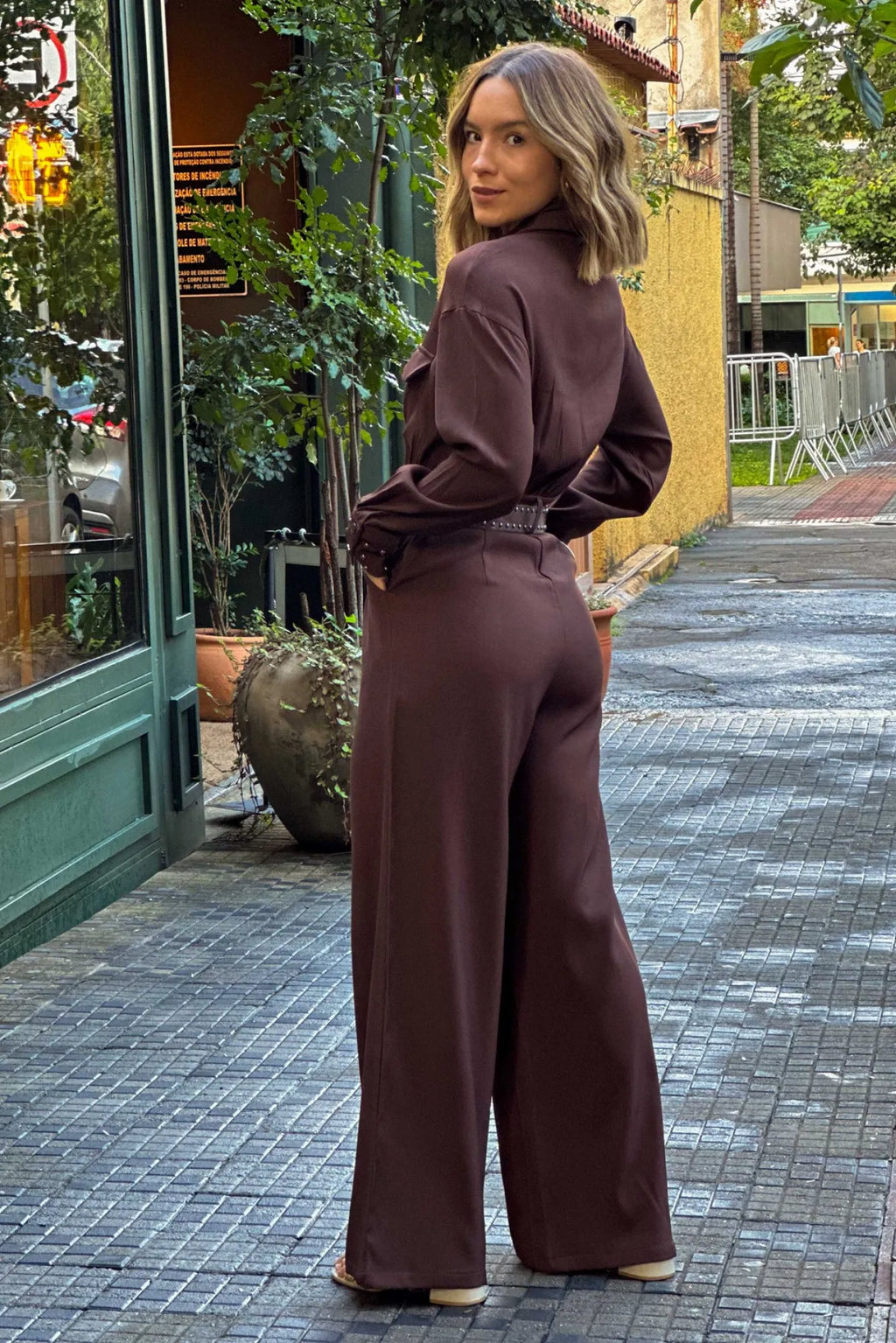 Macacão Feminino Manga Longa com Cinto