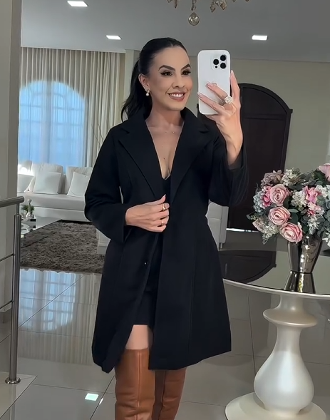 Elegância e versatilidade para os dias mais frios! Esse sobretudo preto tem modelagem reta, gola lapela e fechamento frontal discreto, ideal para compor looks sofisticados ou modernos. Pode ser usado aberto ou fechado, combinando com vestidos, saias ou jeans.